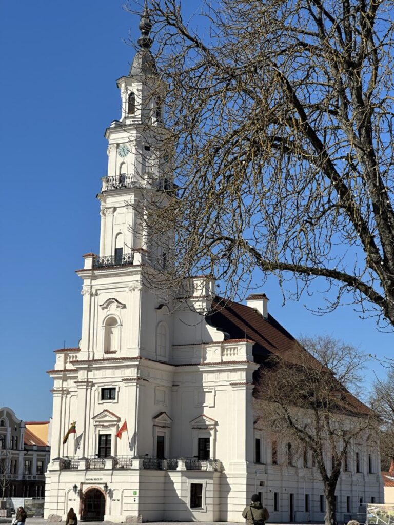 Das Kaunas Town Hall ist eines der bekanntesten Wahrzeichen der Stadt und wird oft auch als „Weißer Schwan“ bezeichnet. Der hohe, schlanke Turm und die helle, weiße Fassade machen das Gebäude sofort erkennbar. Das Rathaus steht zentral am Rathausplatz, direkt in der Altdtadt. Du kommst also früher oder später dort vorbei.