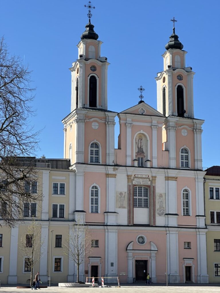 Die St. Francis Xavier Church Kaunas befindet sich direkt am Rathausplatz und gehört zu den schönsten barocken Kirchen der Stadt. Ihre weiße Fassade fügt sich tadellos in die umstehenden hellen Gebäuden rundherum am Rathausplatz ein. Sie fällt besonders durch ihre zwei markanten Türme auf. Die Kirche wurde von Jesuiten erbaut und hat eine lange Geschichte. Im Inneren erwartet dich eine eher schlichte, aber dennoch eindrucksvolle Gestaltung.