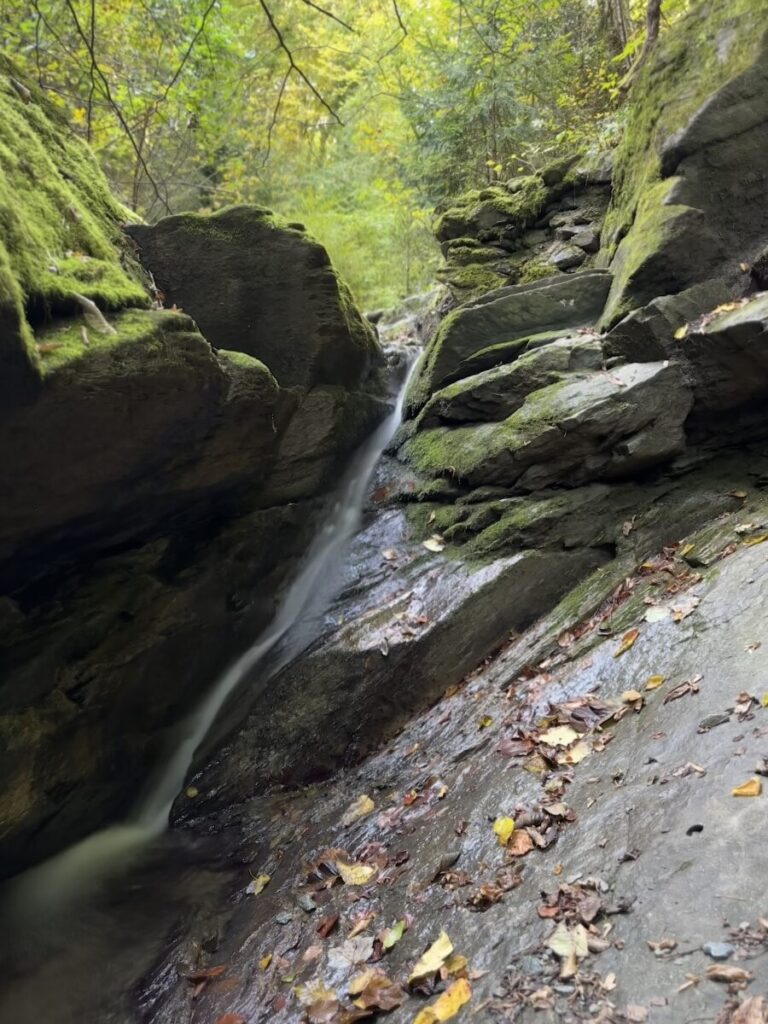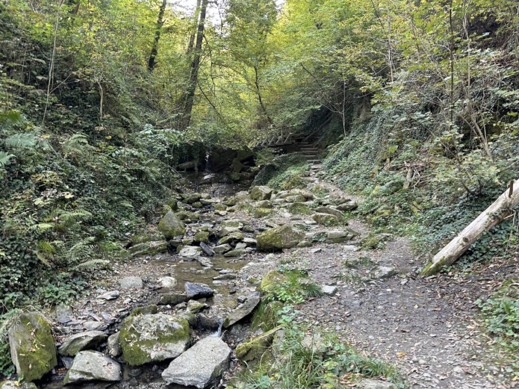 Der Wanderweg bei der führt dich meistens direkt am Bachlauf entlang. Es geht über mehrere Brücken und Holzstege, sodass du immer wieder die Seite wechselst und einen guten Blick auf die kleinen Wasserfälle und Kaskaden hast. Der Weg ist gut begehbar, aber eben ein echter Waldpfad mit Wurzeln und Steinen. Besonders im Sommer ist es hier deutlich kühler als in der aufgeheizten Innenstadt, da die Schlucht und das dichte Blätterdach der Bäume die Hitze gut abschirmen. Falls es allerdings mal richtig stark regnet, kann der Bach schnell anschwellen – in solchen Fällen wird die Klamm aus Sicherheitsgründen auch mal gesperrt.